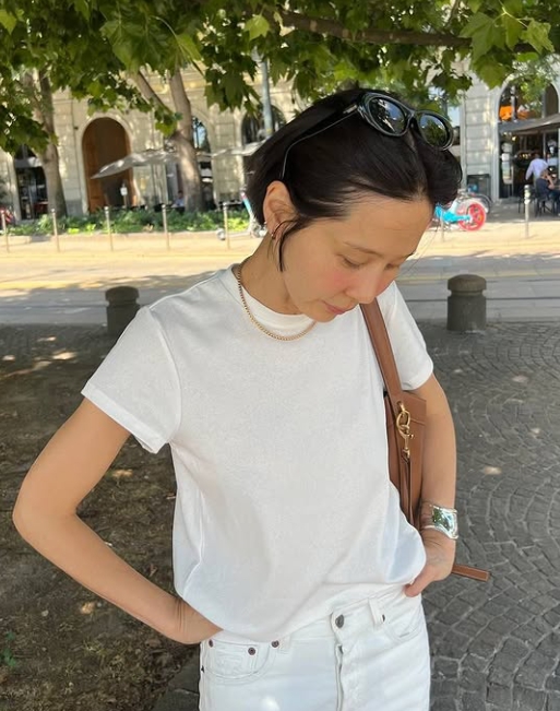 김나영님처럼 하나만 착용해도 충분히 세련된 느낌을 연출할 수 있어요. 기본 티셔츠나 니트에도 고급스러운 포인트를 더해주죠.