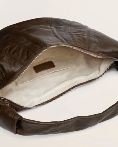 디자인적으로 보면 이 가방은 정말 균형잡혔어요. 둥글게 감긴 듯한 구조로 만들어져 있어서, 너무 캐주얼하지도 않으면서 과하게 포멀하지도 않아요. 이게 바로 활용도가 높은 가방의 핵심이에요. 일상 코디에도 잘 어울리고, 세미 포멀한 자리에도 어울리는 중간의 지점을 정확하게 잡고 있거든요.