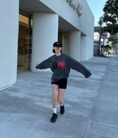 루즈핏 럭비 셔츠에 타이트한 팬츠, 볼 캡, 스니커즈를 매치하시는 모습 보셨나요? 활동성과 스타일을 모두 고려한 실루엣이 정말 인상적이에요. 체형은 자연스럽게 커버하면서도 트렌디함은 절대 놓치지 않으시거든요.