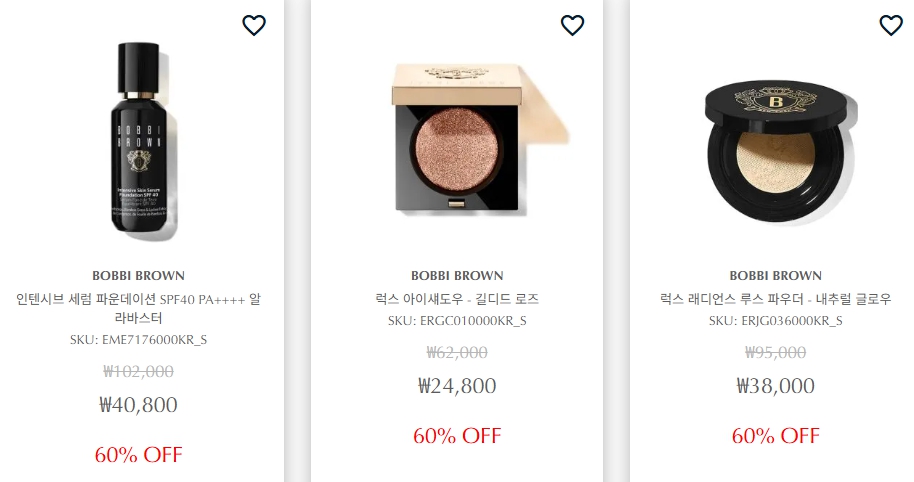 - 에스티로더, 바비브라운 베이스 제품군 할인율 특히 높음